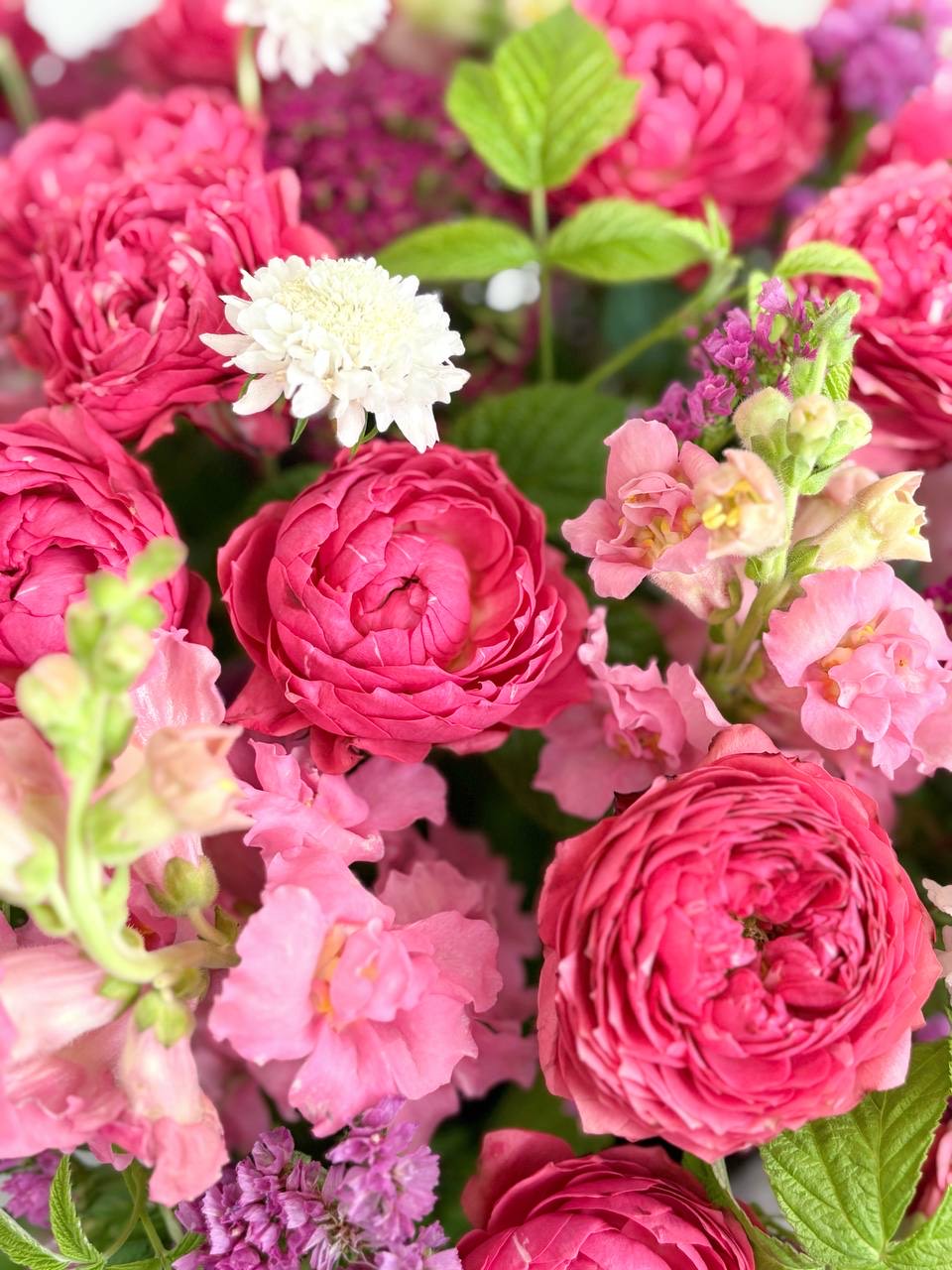 · Пионовидные розы — главный акцент композиции, символизирующие романтику и благородство