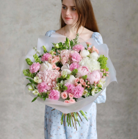 БОЛЬШОЙ БУКЕТ С ГОРТЕНЗИЕЙ И ПИОНОВИДНОЙ РОЗОЙ