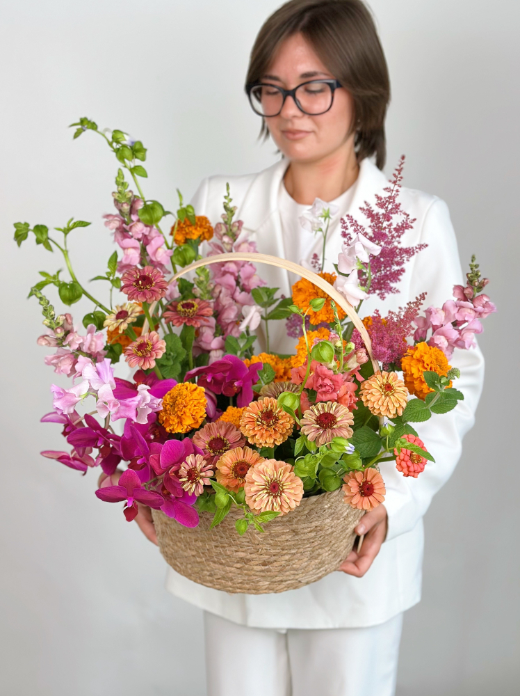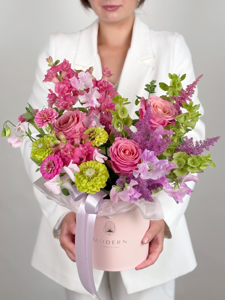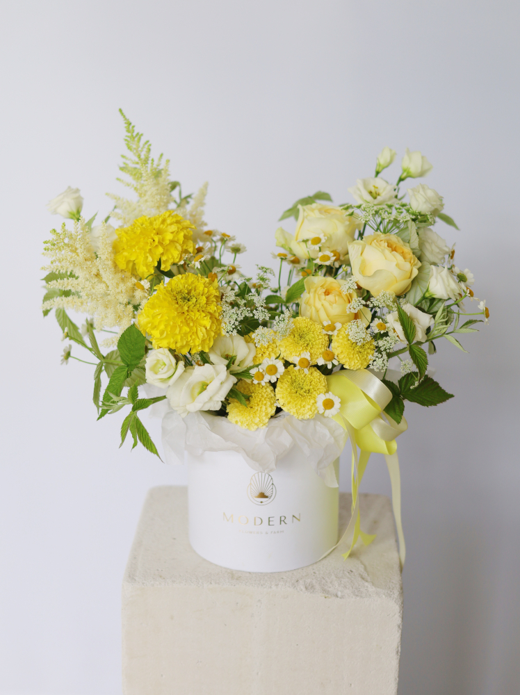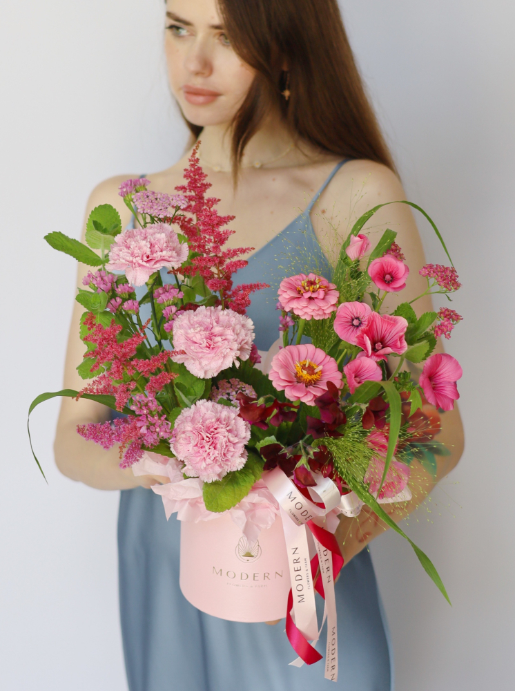 Композиция из цветов - одна из популярных категорий в онлайн-каталоге магазина Modern Flowers & Farm. Такой подарок покупают на День учителя, 1 сентября, юбилей, новоселье и т.д.