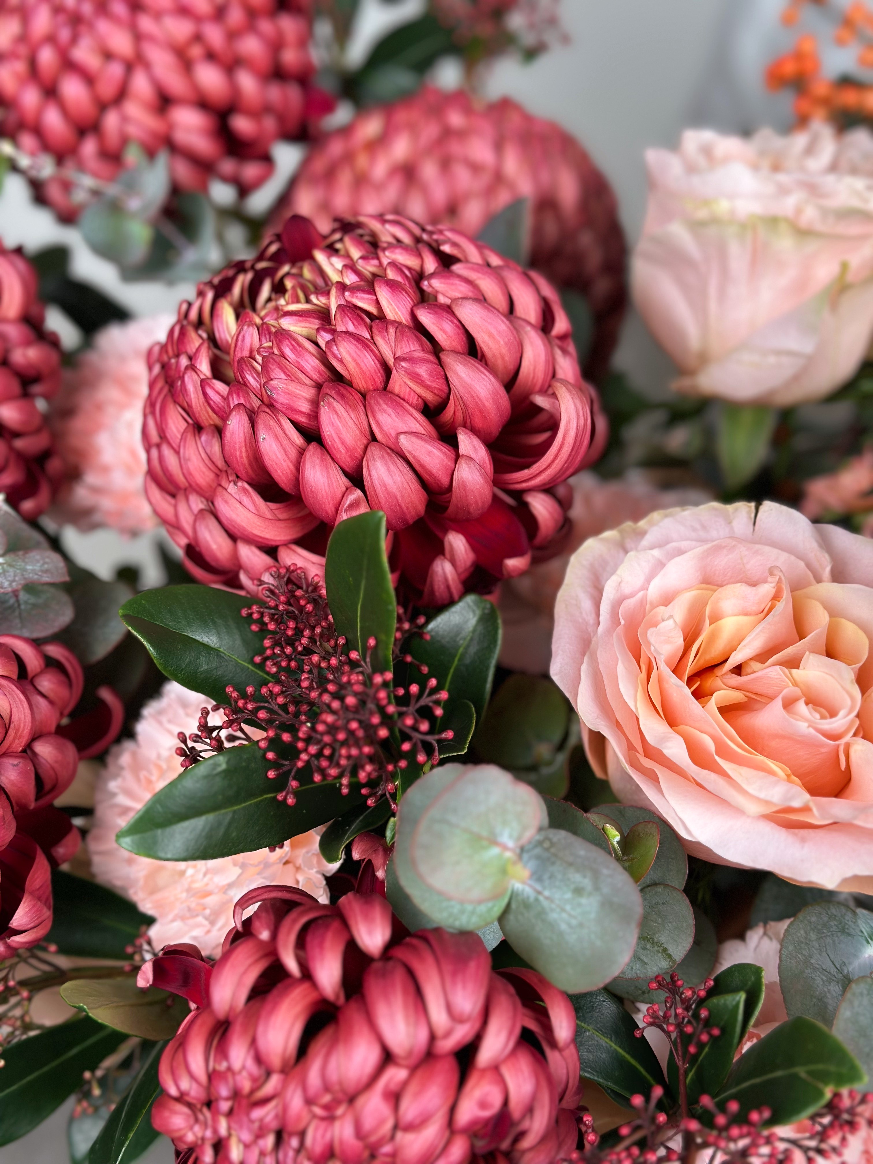 КОРЗИНА В ОСЕННИХ ТОНАХ С ПИОНОВИДНОЙ РОЗОЙ
