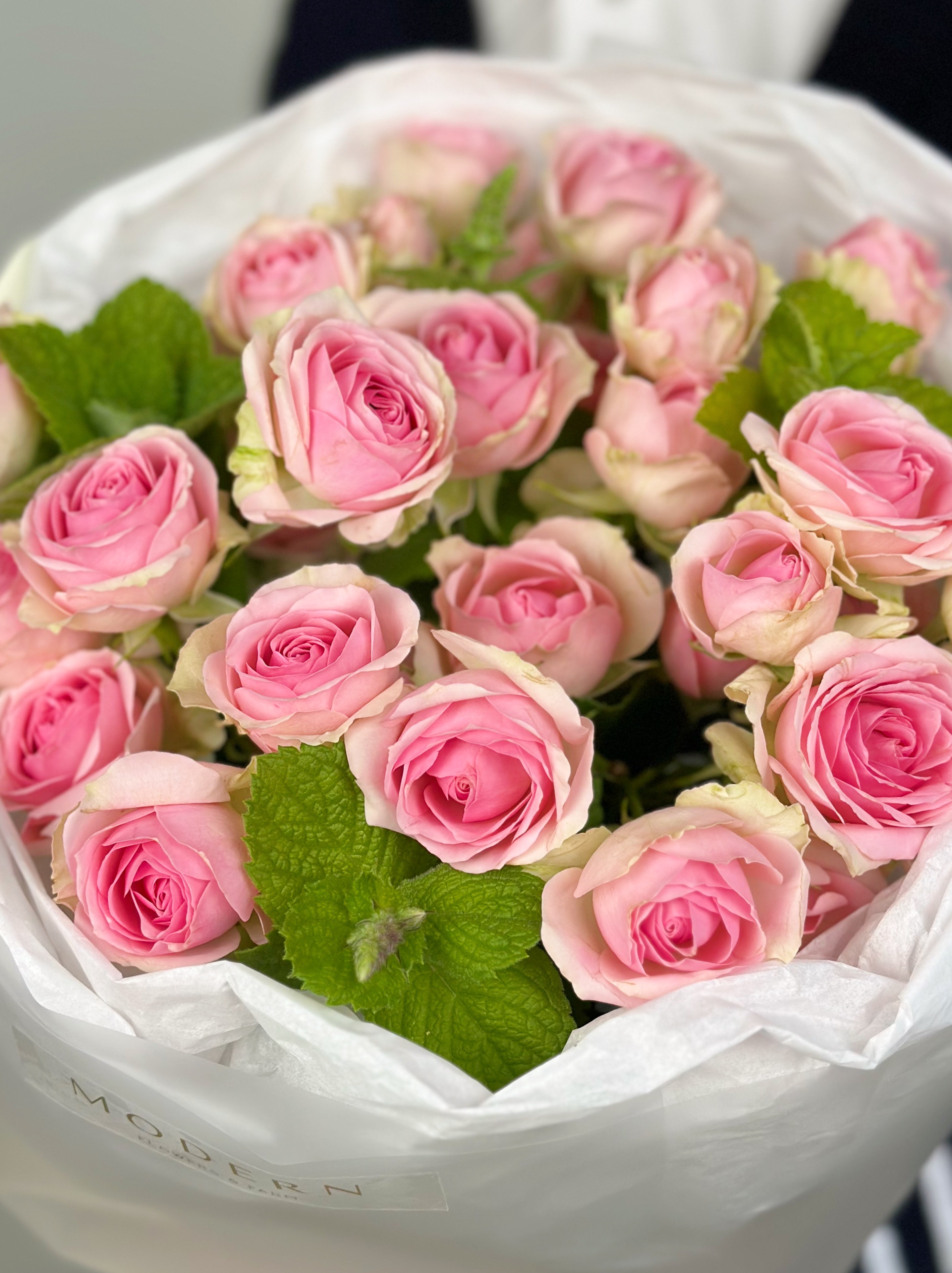 НЕЖНЫЙ БУКЕТ С КУСТОВОЙ РОЗОЙ И МЯТОЙ