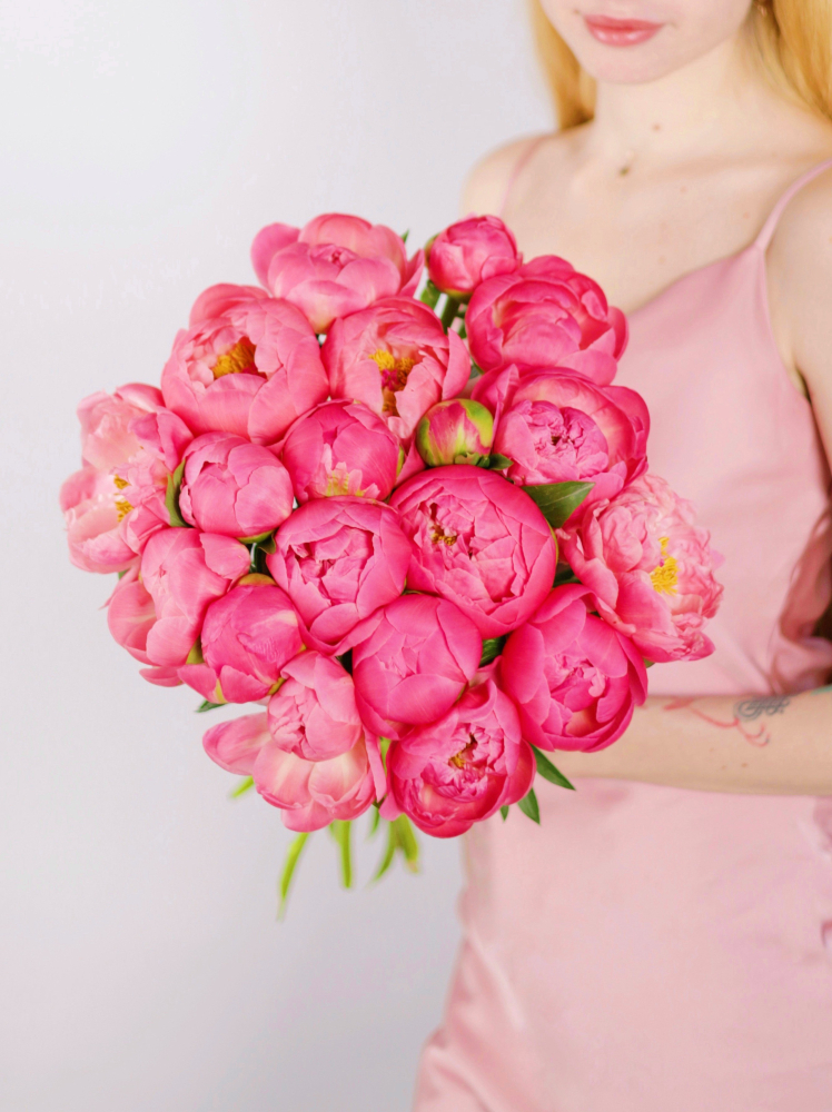 Пион Корал Шарм в моно- и сборных букетах — топ композиций магазина Modern Flowers & Farm в Москве
